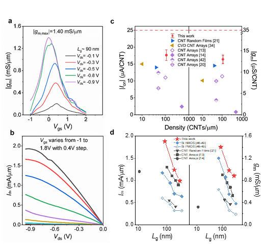 半导体碳纳米管具有超高载流子迁移率和饱和速度、优异的本征线性度等电学特征,并且本征尺寸小、化学稳定性高、导热性好、机械强度高,在数字集成电路和射频电路领域都具有巨大潜力,具备构建射频/数字电路SOC系统集成平台的优势,有望为未来6G通信技术提供理想的核心芯片技术。
