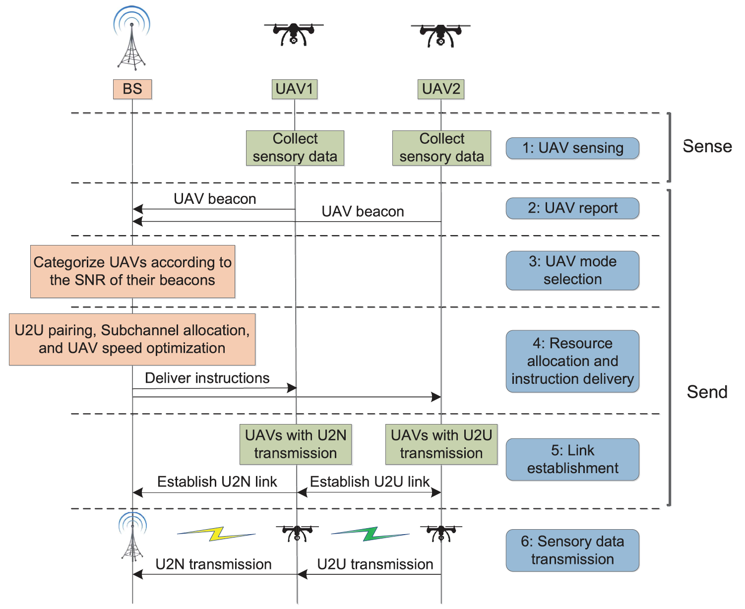 图2 协作式无人机传感和通信协议