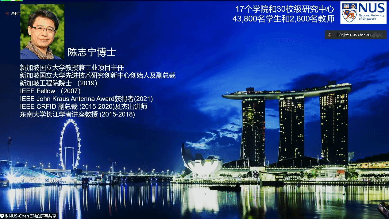 前沿学术论坛第三十期通过网络顺利举行。本期论坛邀请到新加坡工程院院士、新加坡国立大学电子与计算机工程系陈志宁教授做主题为“老树开新花:天线技术的发展与创新(AntennaX)”的学术报告。讲座由有爱爱