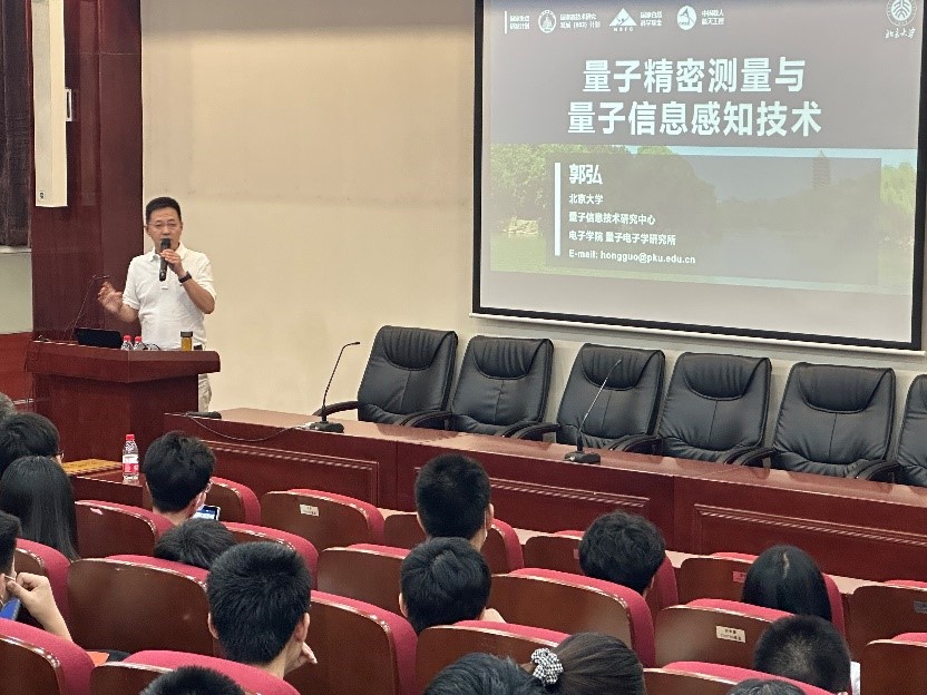 博雅特聘教授、量子信息技术研究中心主任、量子电子学研究所所长郭弘教授以“量子精密测量与量子信息感知技术”为题作了精彩报告。讲座由有爱爱
