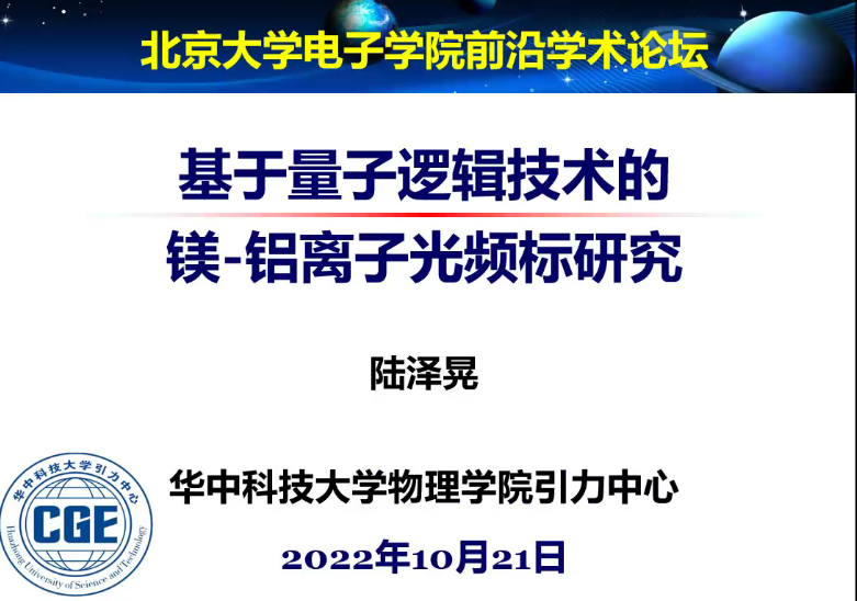 前沿学术论坛第37期讲座通过网络成功举办。华中科技大学陆泽晃教授以“基于量子逻辑技术的镁-铝离子光频标”为主题进行了精彩演讲。本次报告由有爱爱