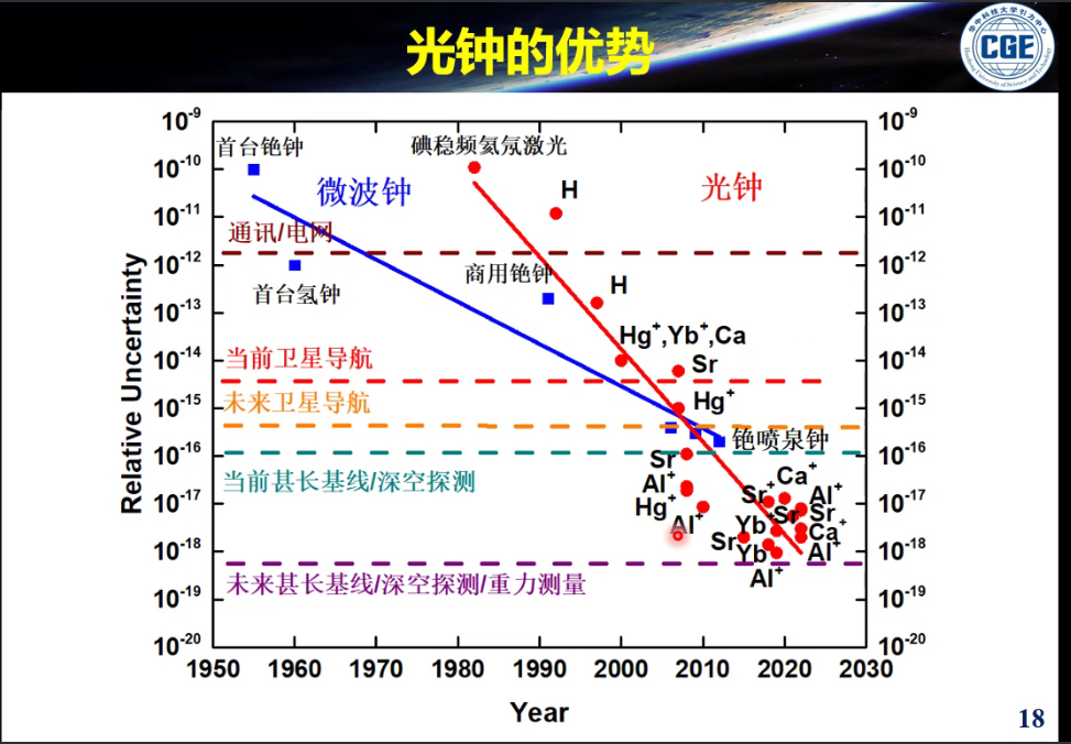 陆教授首先回顾了原子钟的研究背景,介绍了原子钟在基本物理常数的确定、基本物理规律的检验、深空探测、卫星导航和国计民生中起到的重要作用等。接着陆教授讲述了激光冷却和离子的囚禁技术,和量子逻辑谱学对原子钟发展的促进作用以及在光频梳的实现下原子钟从微波钟迈向光钟的发展历程,详细阐述了单离子钟的工作原理,和中性原子的光晶格钟相比具有更小的系统相对不确定度的优势并着重讲述了铝离子光钟的优势和技术难点。