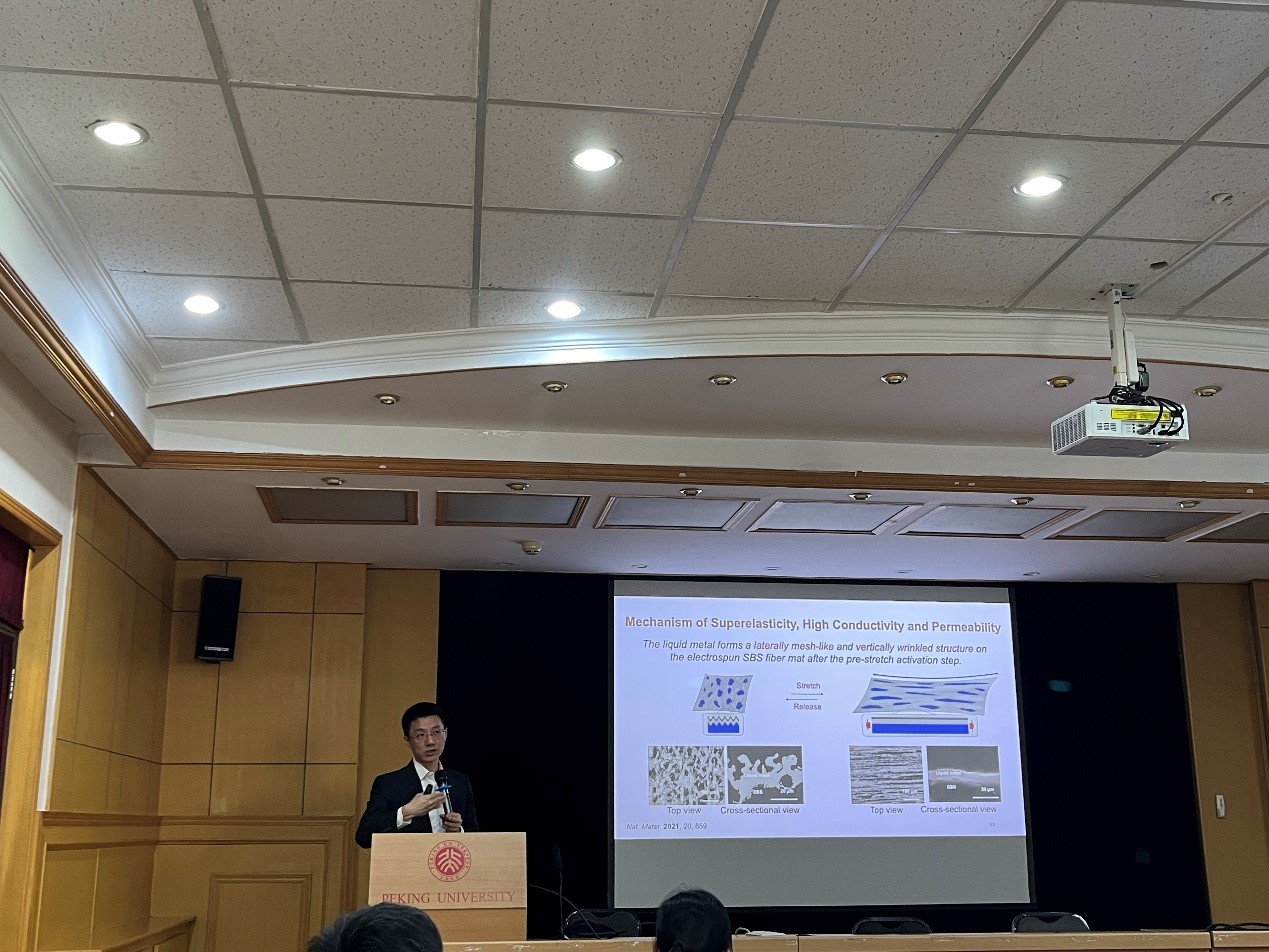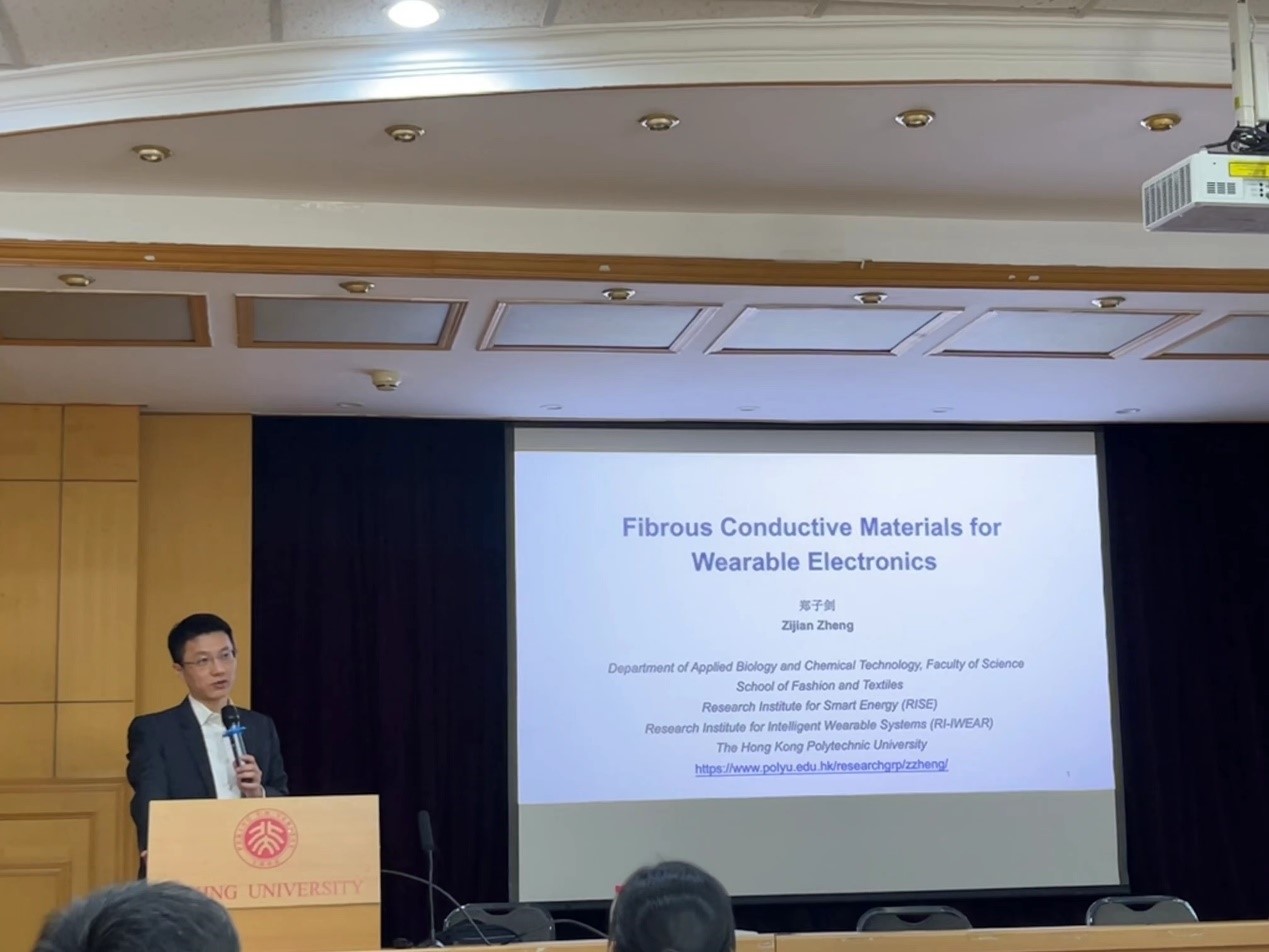 理科二号楼2736报告厅成功举办。香港理工大学应用生物及化学技术学系软材料及器件讲座教授,智能可穿戴系统研究院副院长,材料与器件中心实验室副主任郑子剑教授以“Fibrous Conductive Materials for Wearable Electronics”为题作了精彩报告。讲座由有爱爱