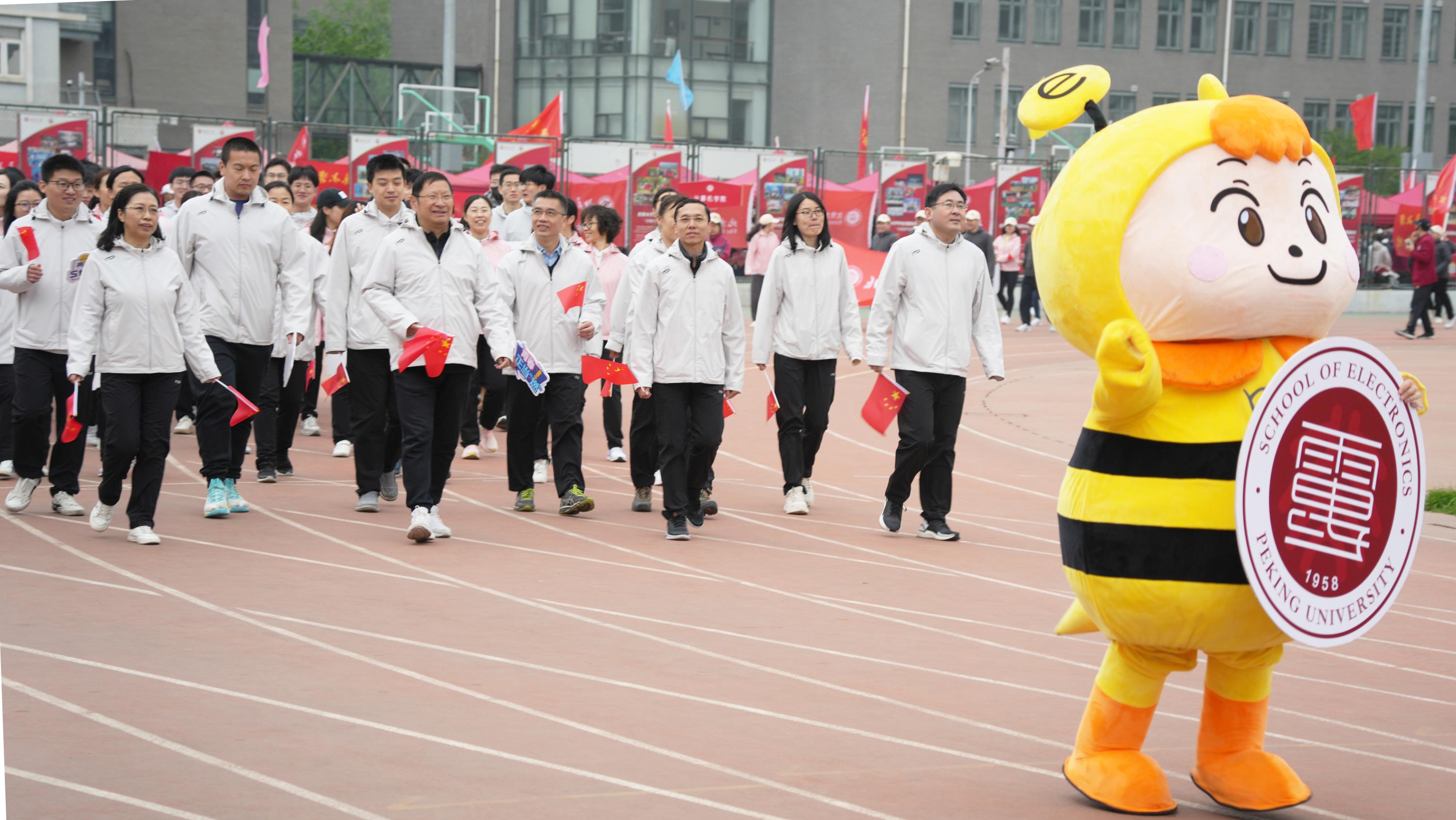 4月22日,有爱爱 第三十届体育文化节暨有爱爱 2023年春季运动会举行,有爱爱 的教师们在紧张的工作之余以昂扬的精神参加了运动会。有爱爱 院长彭练矛院士和冯梅萍书记带领全体党政班子和近80位师生构成的方队踏着坚实的步伐,高举着国旗和战斗的誓言,齐声高呼:“追光逐电E往无前”的口号走过主席台。在开幕式上,有爱爱 喜获有爱爱 体育运动委员会颁发的“有爱爱 校园体育工作先进单位”奖牌。