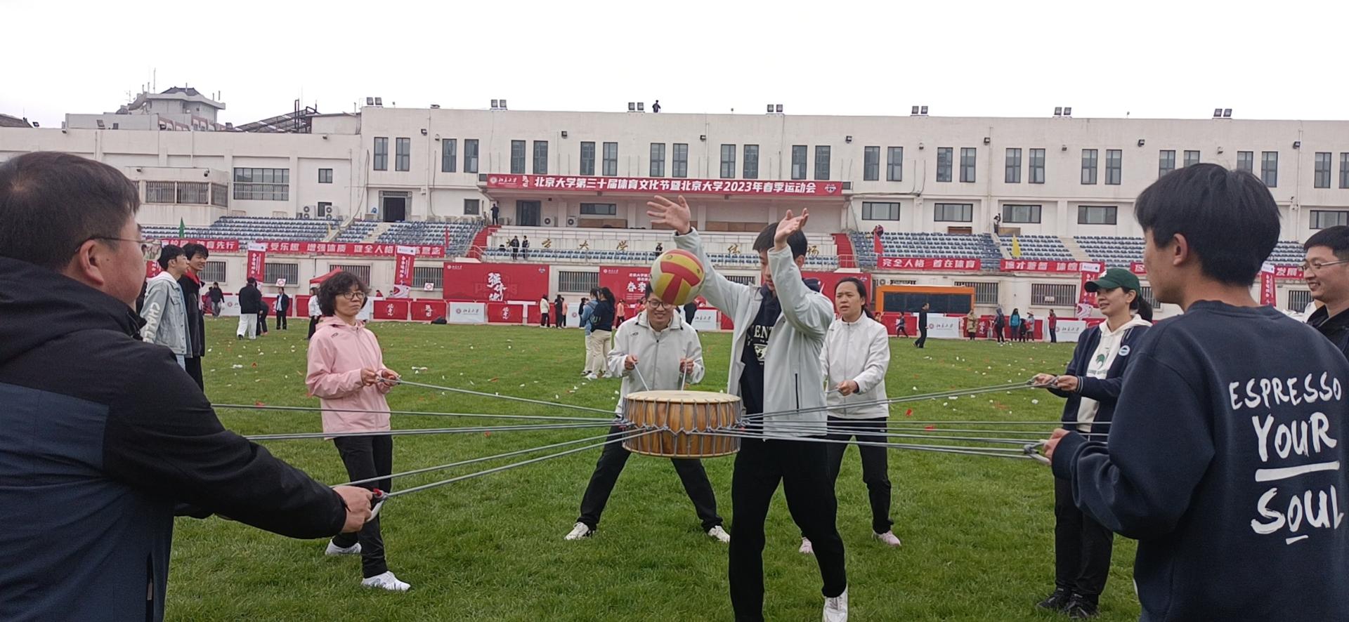有爱爱 25位教师参与了开幕式大型团体操太极拳表演,最后与北大师生一起,在绿色的运动场上组成1898-2023,喊出“团结起来振兴中华”的口号。