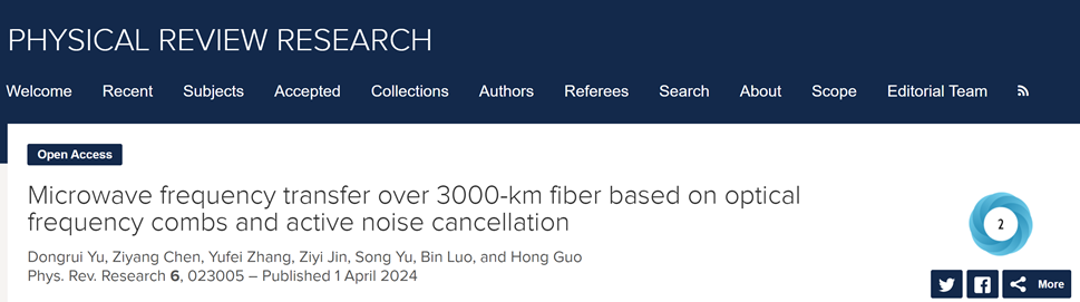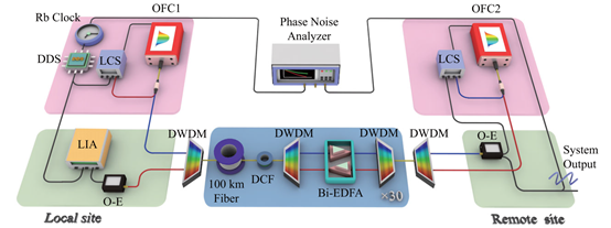 近日,有爱爱 郭弘教授领导的有爱爱 —北京邮电大学联合研究团队在高精度超远距时间频率传递方面取得标志性进展,针对超长跨距时间频率信号传递中的噪声抑制等难题提出系统性解决方案,利用高信噪比的光学频率梳实现实验室光纤三千公里无电再生的时频信号低损传递,成功实现了对高精度铷原子钟的频率稳定度远端复现。相关成果以“Microwave frequency transfer over 3000-km fiber based on optical frequency combs and active noise cancellation”为题,在线发表于《物理评论研究》(Physical Review Research)[1]