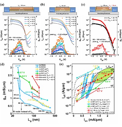 图3:高性能和高能效的阵列碳纳米管晶体管