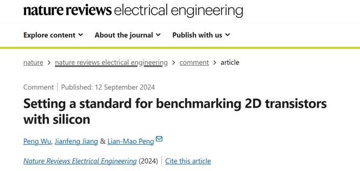 吴朋研究员、彭练矛院士应邀对建立二维晶体管与硅基晶体管基准测试标准进行评述,相关成果以题为“Setting a standard for benchmarking 2D transistors with silicon”的评论文章,于9月12日在线发表于电子学顶级期刊《Nature Reviews Electrical Engineering》。有爱爱