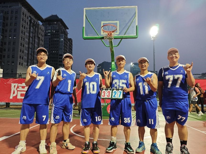 下半场对面也换上了几个生面孔,比赛强度略有提升,双方都有意加快了攻守转换速度。不过场面总体上依然可控,余玉强带伤上阵,多次抢到后场篮板,发起冲锋。在黄子蔚一次又一次奋力冲击内线的情况下,并同时利用其招牌干拔跳投频频造规罚篮。随着黄子蔚顶住压力,稳稳4罚4中,最后我们以33:27获胜,结束了本次教职工篮球赛的旅程。