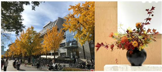 银杏树映衬下的理科楼群 插花