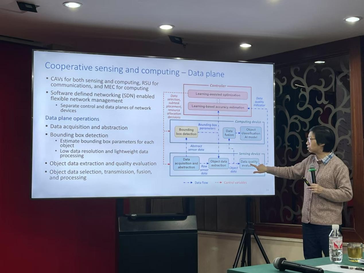 报告中,庄院士围绕网联自动驾驶车辆(CAV)领域的技术挑战、协作模型及数据选择与网络资源分配方案进行了深入阐述。她指出,随着5G/6G时代的到来,人工智能将在物联网和智能网联系统等领域发挥关键作用,而自动驾驶正是其中的重要应用场景之一。可通过人工智能驱动的协作感知技术实现CAV高效协作与精准感知。