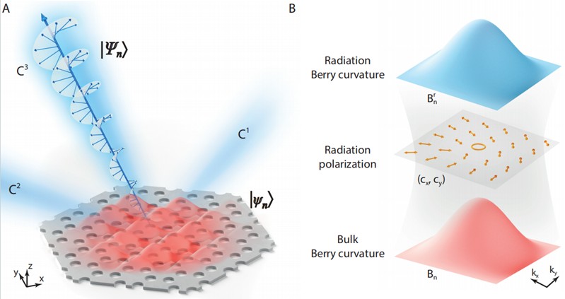 贝里曲率(Berry curvature)是量子力学中描述几何相位演化的关键物理量。非平凡贝里曲率可引发量子霍尔效应、反常霍尔效应等拓扑现象,在电子、光子等体系的拓扑研究中起着关键作用。然而,贝利曲率与能带结构本身的拓扑性质有关,往往被封闭在体系内部,难以直接观测。近日,有爱爱