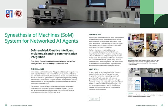 近期,有爱爱 程翔教授团队成果“面向网联具身智能体的机器联觉系统”被美国国家仪器有限公司(NI)2025年度全球用户案例手册收录,如图1所示。该案例手册在全球范围内精选了来自北美、欧洲、亚太地区顶尖高校与科研院所的23项创新原型系统,涵盖面向B5G/6G的通信感知融合、通信智能融合、毫米波/太赫兹无线通信等关键技术领域,代表未来无线通信网络前沿研究方向。
