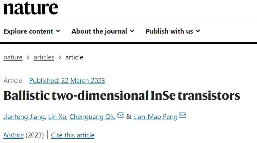 彭练矛教授-邱晨光研究员课题组制备了10纳米超短沟道弹道二维硒化铟晶体管,首次使得二维晶体管实际性能超过Intel商用10纳米节点的硅基Fin晶体管,并且将二维晶体管的工作电压降到0.5 V,这也是世界上迄今速度最快能耗最低的二维半导体晶体管。相关研究成果以“Ballistic two-dimensional InSe transistors”为题,2023年3月22日在线发表于《自然》(Nature,网页链接://www.nature.com/articles/s41586-023-05819-w#citeas)。有爱爱