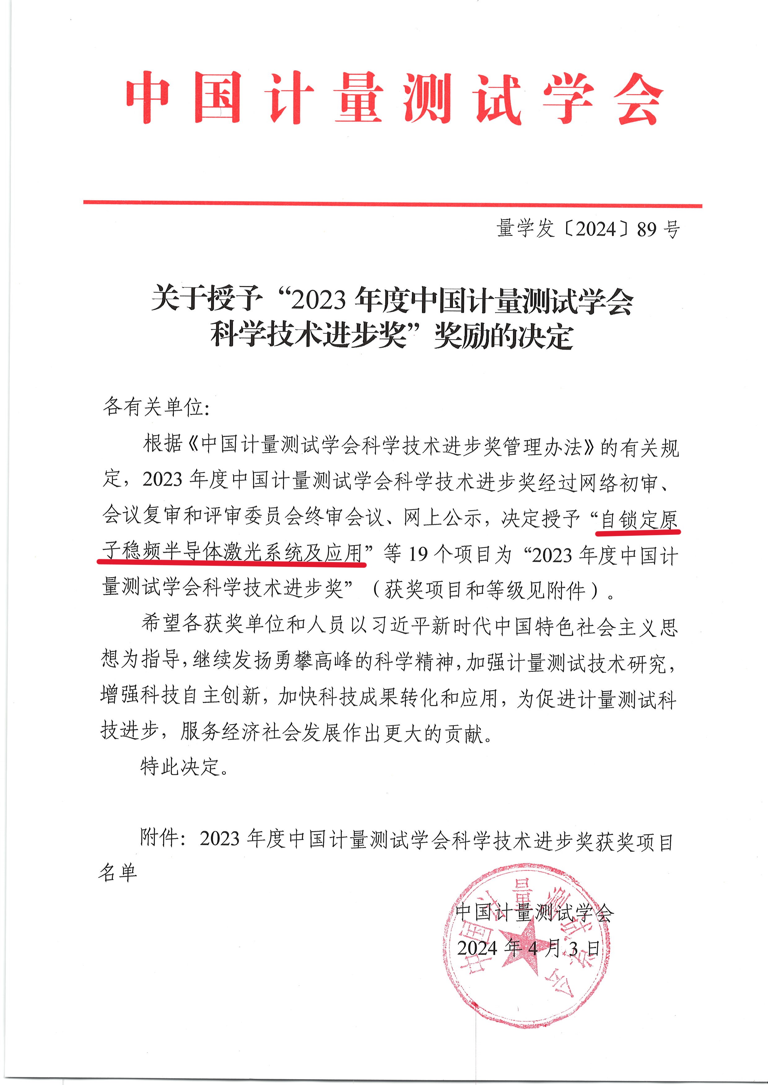 2023年度中国计量测试学会科学技术进步奖奖励公告链接: