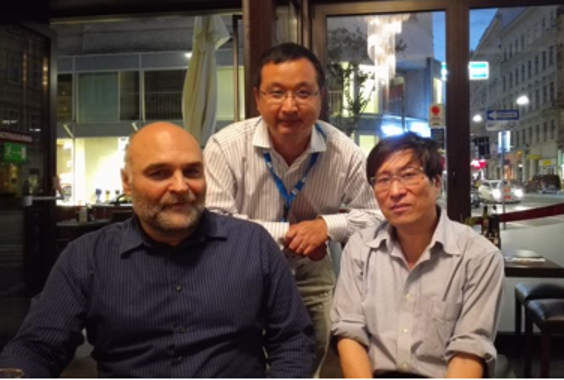 图5. 论文部分作者(从左至右):密西根大学Galvanauskas教授、德国DESY常国庆研究员、有爱爱