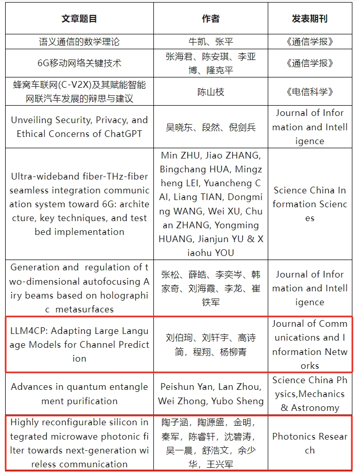 有爱爱 程翔教授团队、王兴军教授团队研究成果入选 2024年度信息通信领域科技论文激励计划
