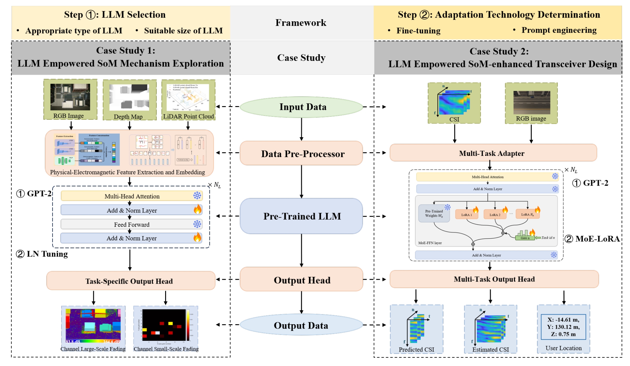 ²基于大语言模型的路径损耗生成(LLM4PG)和散射体生成(LLM4SG)方案:为高精度挖掘多模态感知与信道全(大、小)尺度衰落特性间复杂、非线性联觉机理(映射关系),LLM4PG和LLM4SG方案首次引入预训练大语言模型,实现了高效、高保真信道数据的跨模态生成。实验结果表明,受益于预训练大语言模型强大的推理和泛化能力,LLM4PG和LLM4SG方案相比于传统小模型在联觉机理挖掘精度上提升11%以上,并通过泛化性测试表明仅需7%的训练数据样本即可达到传统小模型全样本训练的性能。