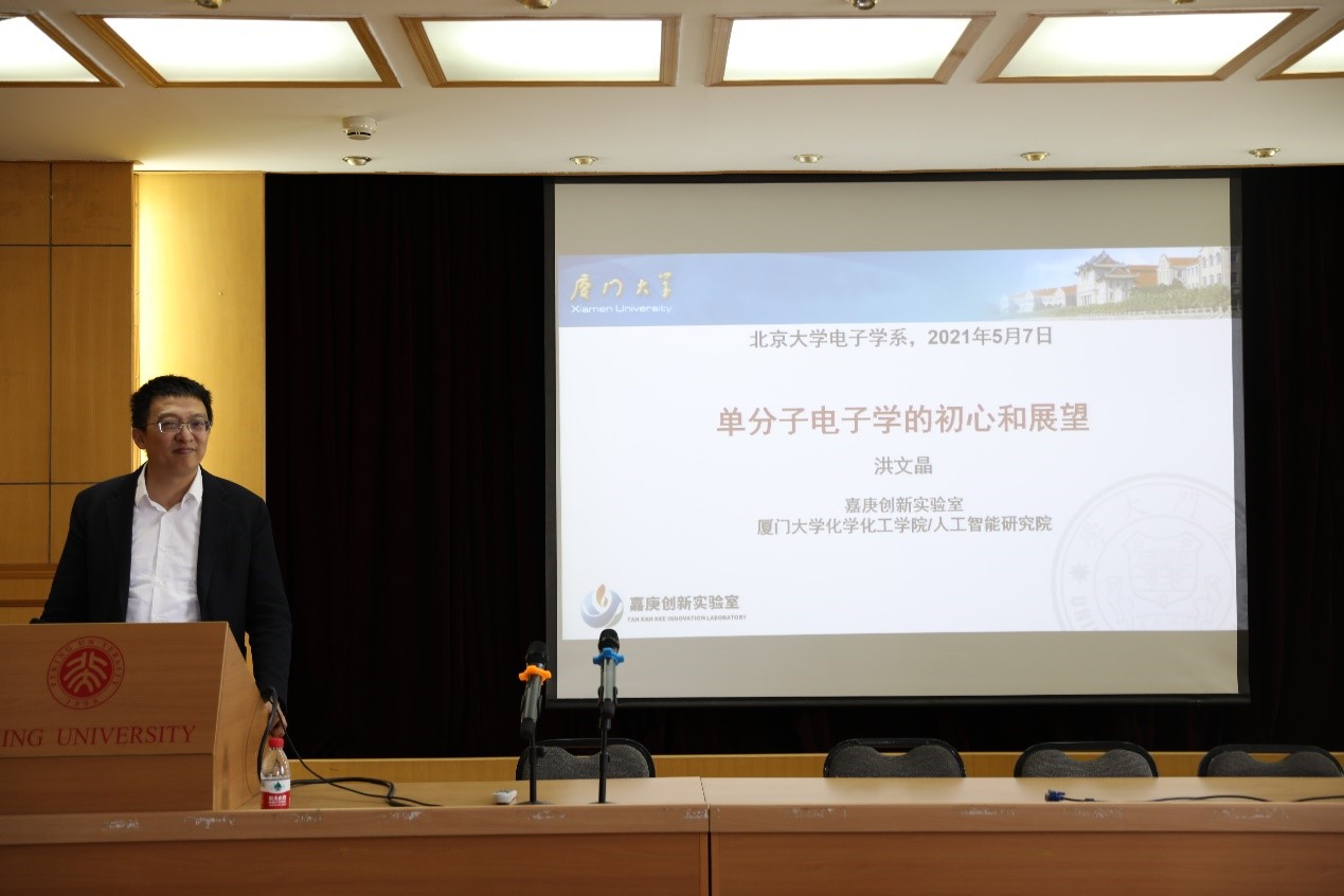 理科二号楼2736报告厅顺利开讲。本次讲座的主讲嘉宾为厦门大学化学化工学院、人工智能研究院洪文晶教授,报告主题为“单分子电子学的初心和展望”。讲座由信息科学技术学院副院长、电子学系党总支书记侯士敏教授主持,全系50余名师生到场聆听了报告。