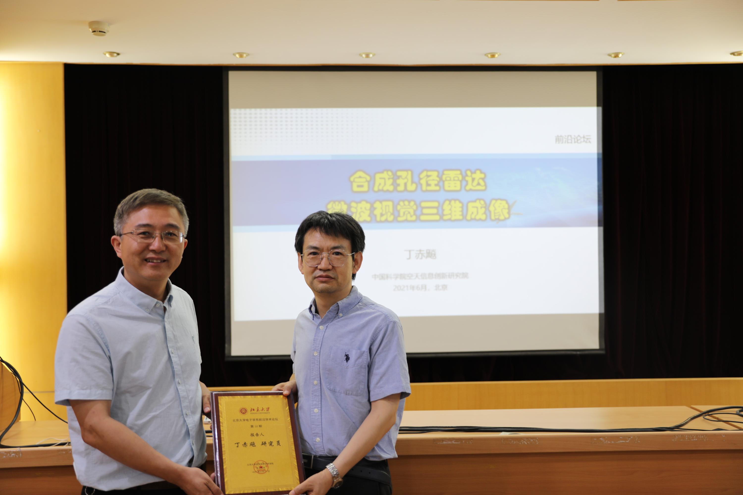 活动最后,信息科学技术学院副院长、电子学系党总支书记侯士敏教授为丁赤飚研究员颁发本次活动的纪念证书并合影留念。本期讲座在热烈的掌声中圆满结束!