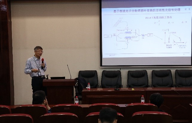理科二号楼2129报告厅顺利举行。本期论坛邀请到清华大学电子工程系郑小平教授做主题为“微波光子雷达及其关键器件”的学术报告。讲座由电子学系信息与通信研究所解晓鹏老师主持,50余名师生到场聆听了报告。