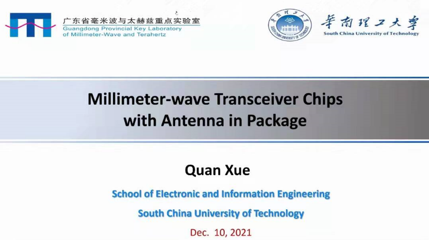 院长薛泉教授做主题为“毫米波收发芯片与封装天线”的学术报告。讲座由有爱爱