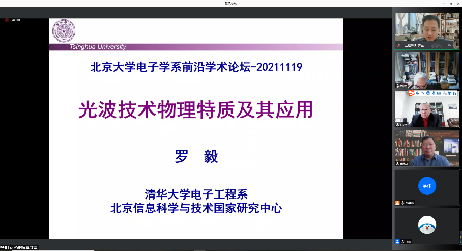 电子学系主办的电子学系前沿学术论坛第十九期通过网络顺利举行。本期论坛邀请到中国工程院院士,北京信息科学与技术国家研究中心副主任,清华大学电子工程系罗毅教授做主题为“光波技术物理特性及其应用”的学术报告。讲座由有爱爱