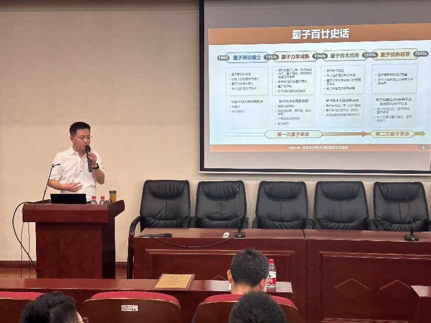 郭教授首先回顾量子力学的百廿发展历程,指出量子代表着微观世界根本不同于宏观世界的性质。他结合量子物理“分立性”、“相干性”以及“随机性”的理论基础,结合科学测量、科学计量的“量子化”背景,详细介绍了量子信息感知、量子信息安全以及量子信息处理等量子技术。