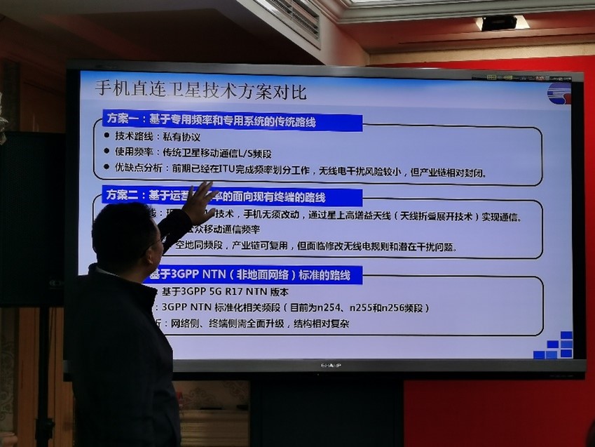李处长首先介绍了卫星互联网的基本概念,他指出卫星互联网是以太空为承载空间,以卫星和地面装置为关键节点,以网络、航天、通信技术为组成的新型网络基础设施。随后回顾了国外卫星通信的发展历程,并指出目前卫星通信的新发展方向为面向5G/6G手机直连的天地融合。接下来,李处长以目前大家熟知的Starlink为例,介绍了宽带卫星互联网系统架构,并对手机直连卫星技术方案做了三种分类:在轨卫星+定制双模手机、新建卫星+现有手机、新建卫星+新研手机。其中前两种是现有落地系统中常用的技术方案,第三种为3GPP 5G R17 NTN版本中提出的方案,需要网络侧与终端侧的全面升级。