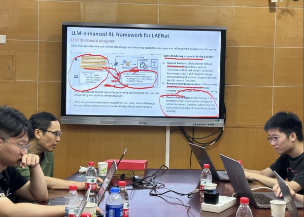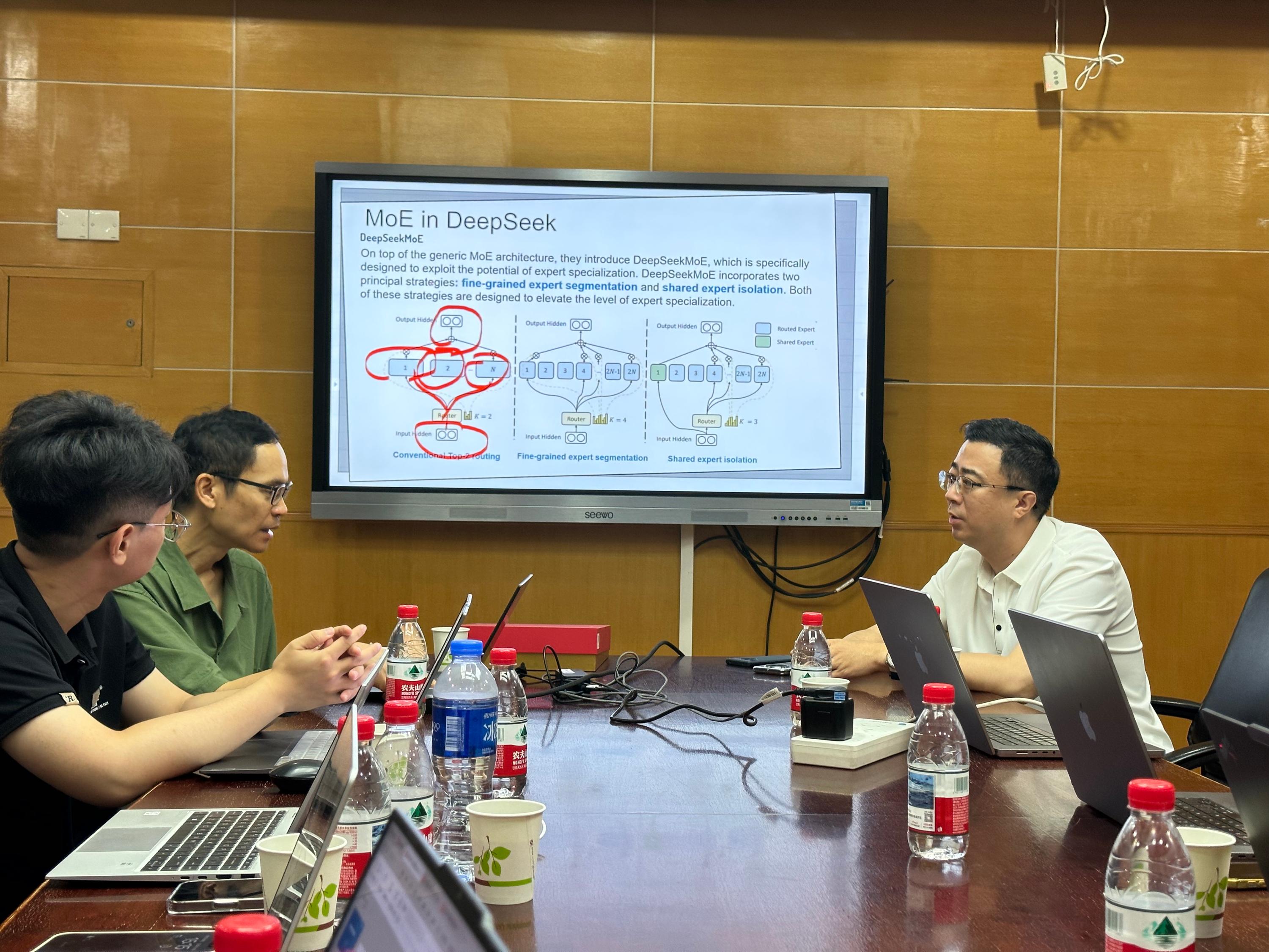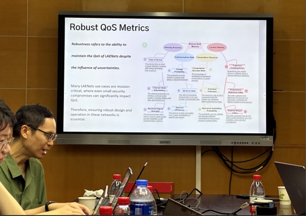 五场精彩报告后,现场师生与Niyato教授展开了热烈而深入的交流与讨论。大家围绕 LLM在LAENet部署的可靠性、LLM幻觉缓解、卫星辅助低空网络信道挑战、世界模型边缘部署能耗 以及 MoE型GAI在移动边缘的安全隐私考量 等核心问题踊跃提问。Niyato教授对每个问题都进行了细致耐心的解答,他不仅深入浅出地解释了复杂的技术细节,更结合实际应用场景,分享了团队在解决这些挑战上的前瞻性思路与最新进展。