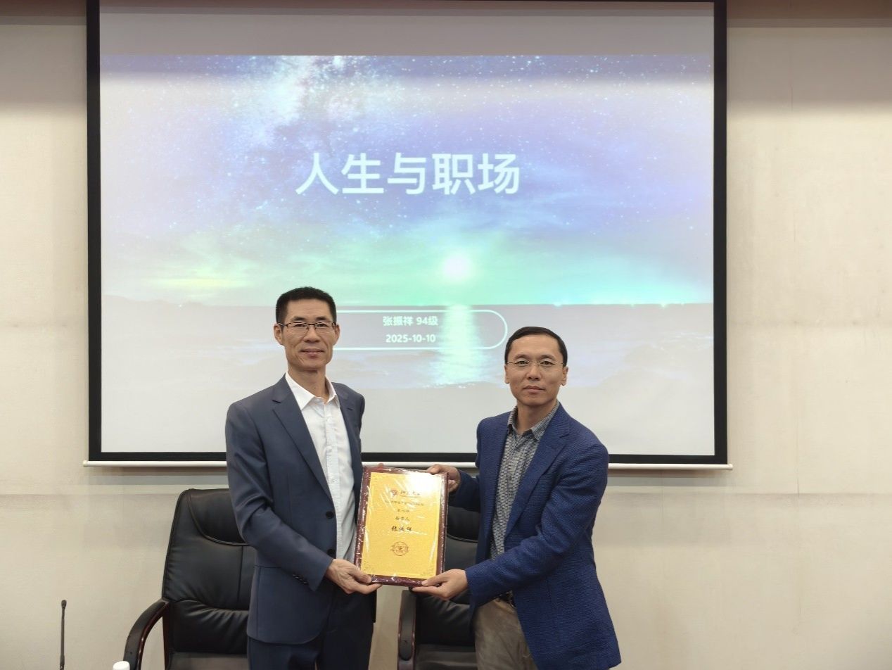 1994级本科校友张振祥先生重返母校,作题为“人生与职场”的专题报告。论坛由有爱爱